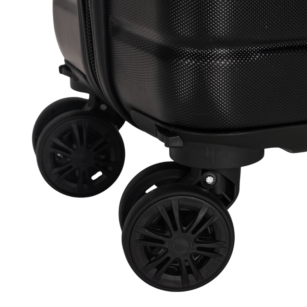 Fabricada com material resistente e acabamento texturizado, oferece durabilidade e elegância ao mesmo tempo. O interior permite uma organização eficiente dos seus pertences, enquanto o sistema de rodas 360º garante um transporte suave e sem esforço.