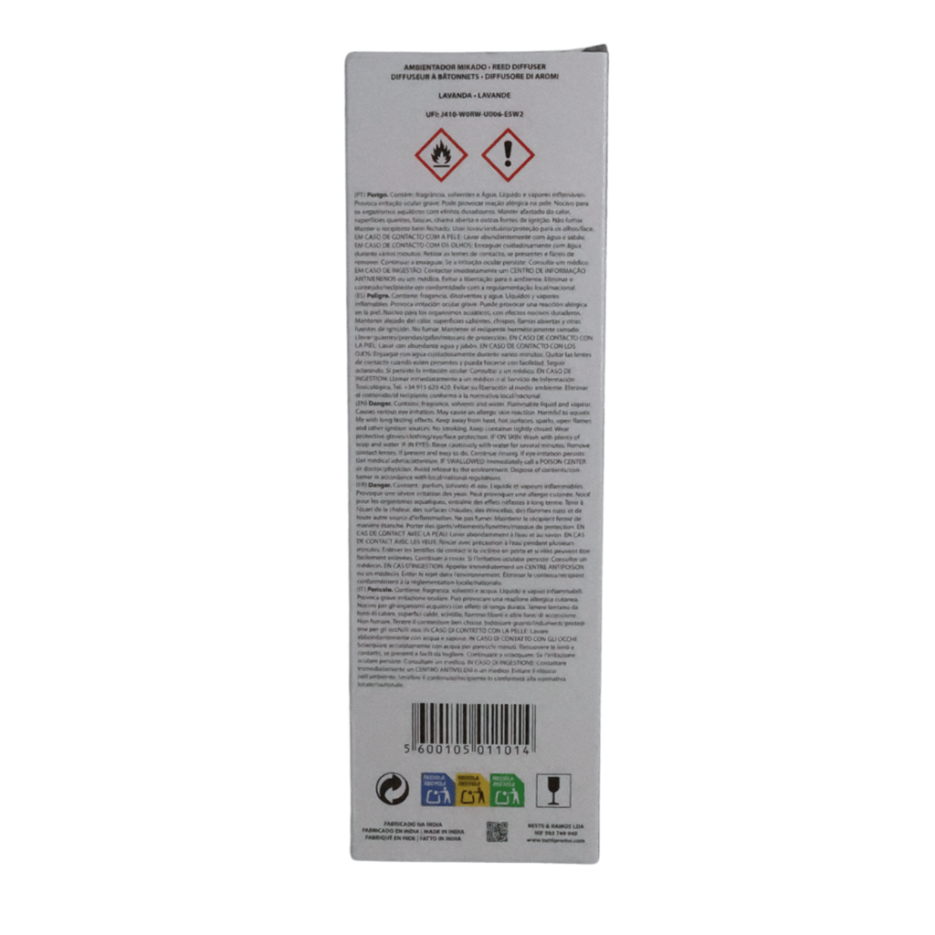 Difusor de aroma com fragrância suave a Lavanda, ideal para perfumar qualquer divisão da casa de forma contínua e elegante. Proporciona uma sensação de frescura e limpeza, criando um ambiente acolhedor e relaxante.
