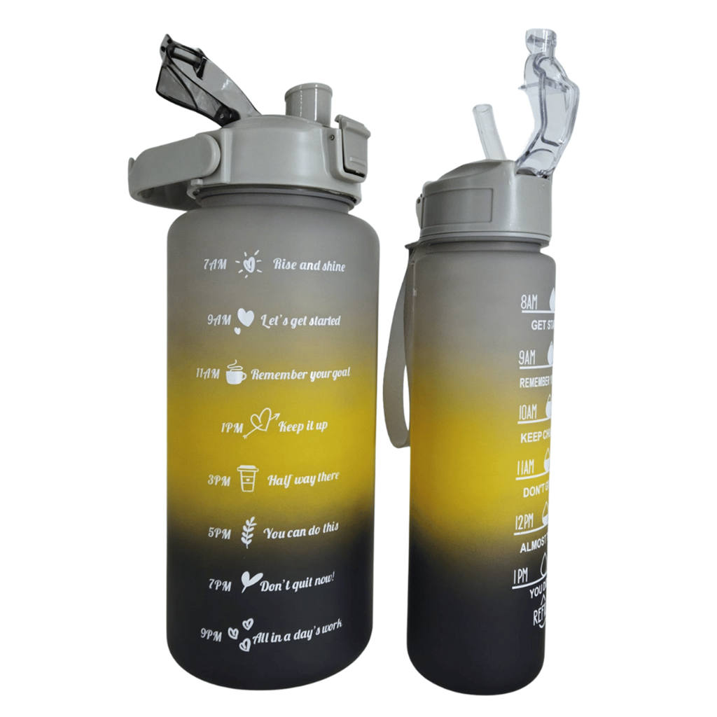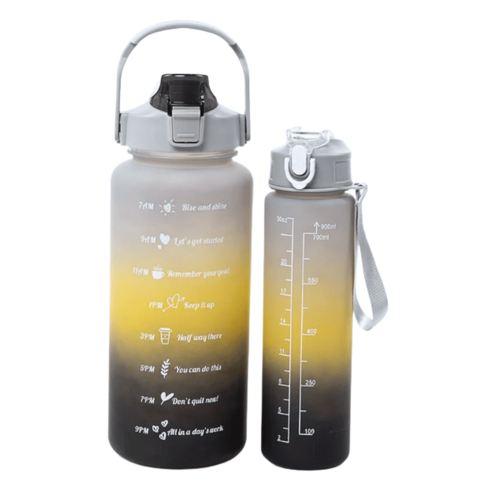 DescriçãoConjunto de 2 garrafas de água desportivas.