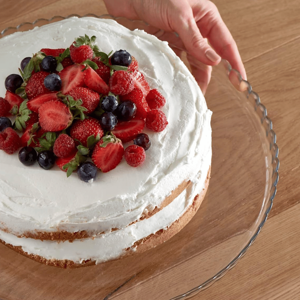 DescriçãoPrato de bolo em vidro.