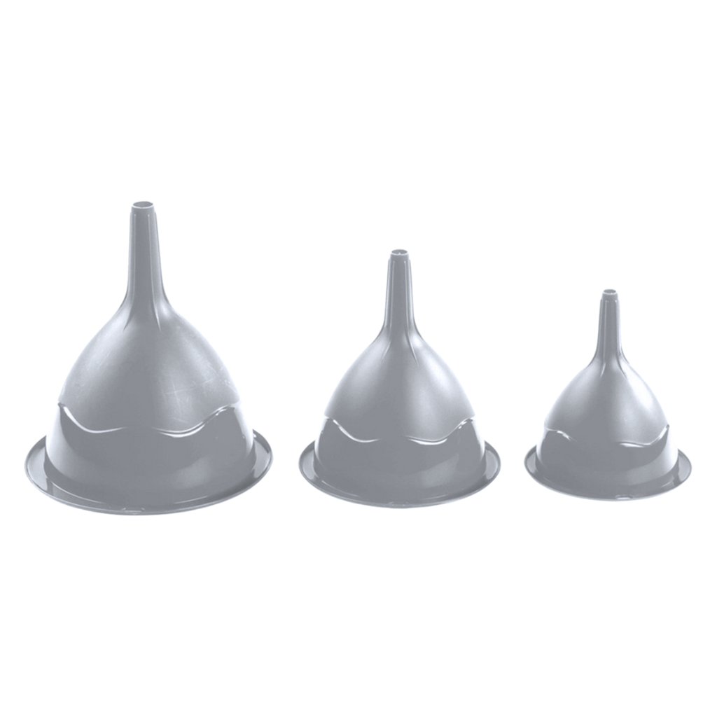 - 1 Funil 11cm- 1 Funil 13cm- 1 Funil 16cm