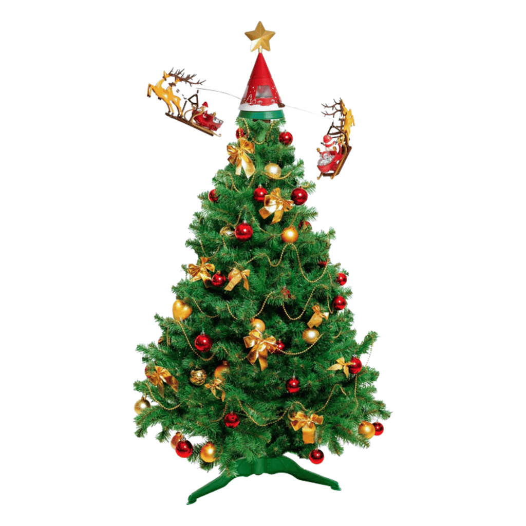 Ponta giratória com Trenós para Árvore de Natal, os 2 trenós giram em torno da árvore, ao som de música, criando um movimento encantador.