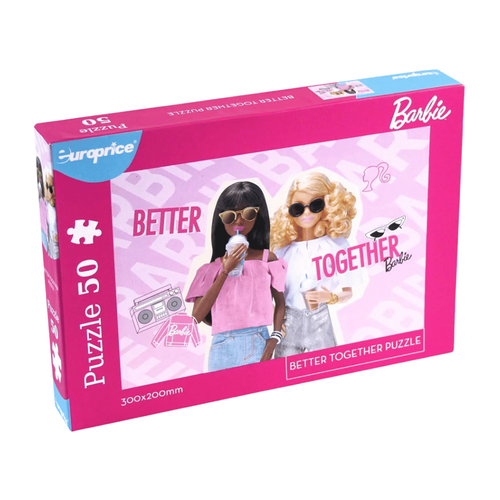 O puzzle Barbie Better Together de 50 peças tem uma ilustração única, que chama a atenção e fica na memória. É um puzzle de boa qualidade, com um acabamento cuidado, que dá gosto fazer e refazer.