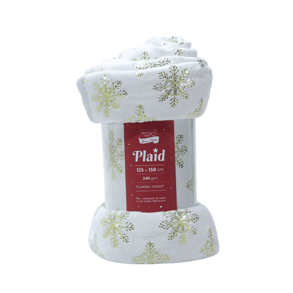MANTA NATAL 125X150CM BRANCO/DOURADO
