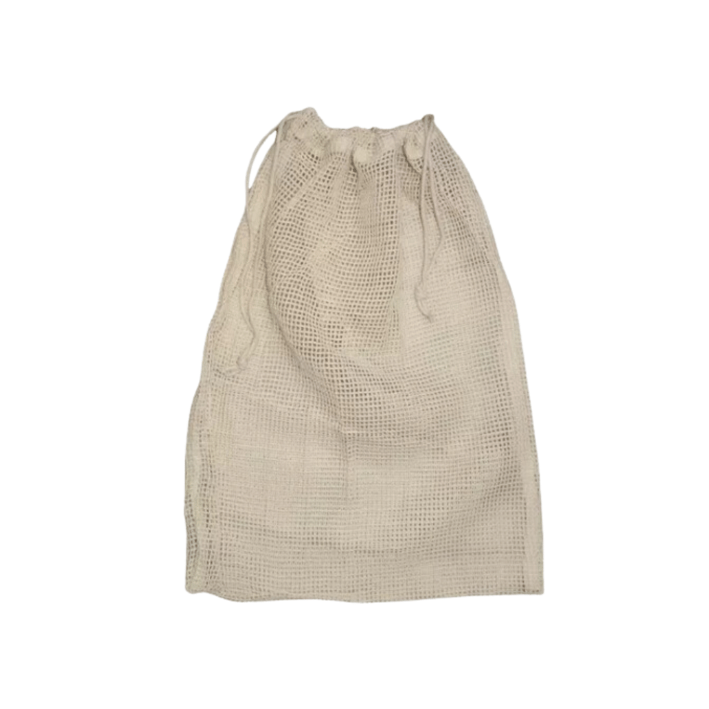 Saco para alimentos reutilizáveis com fecho em cordão.