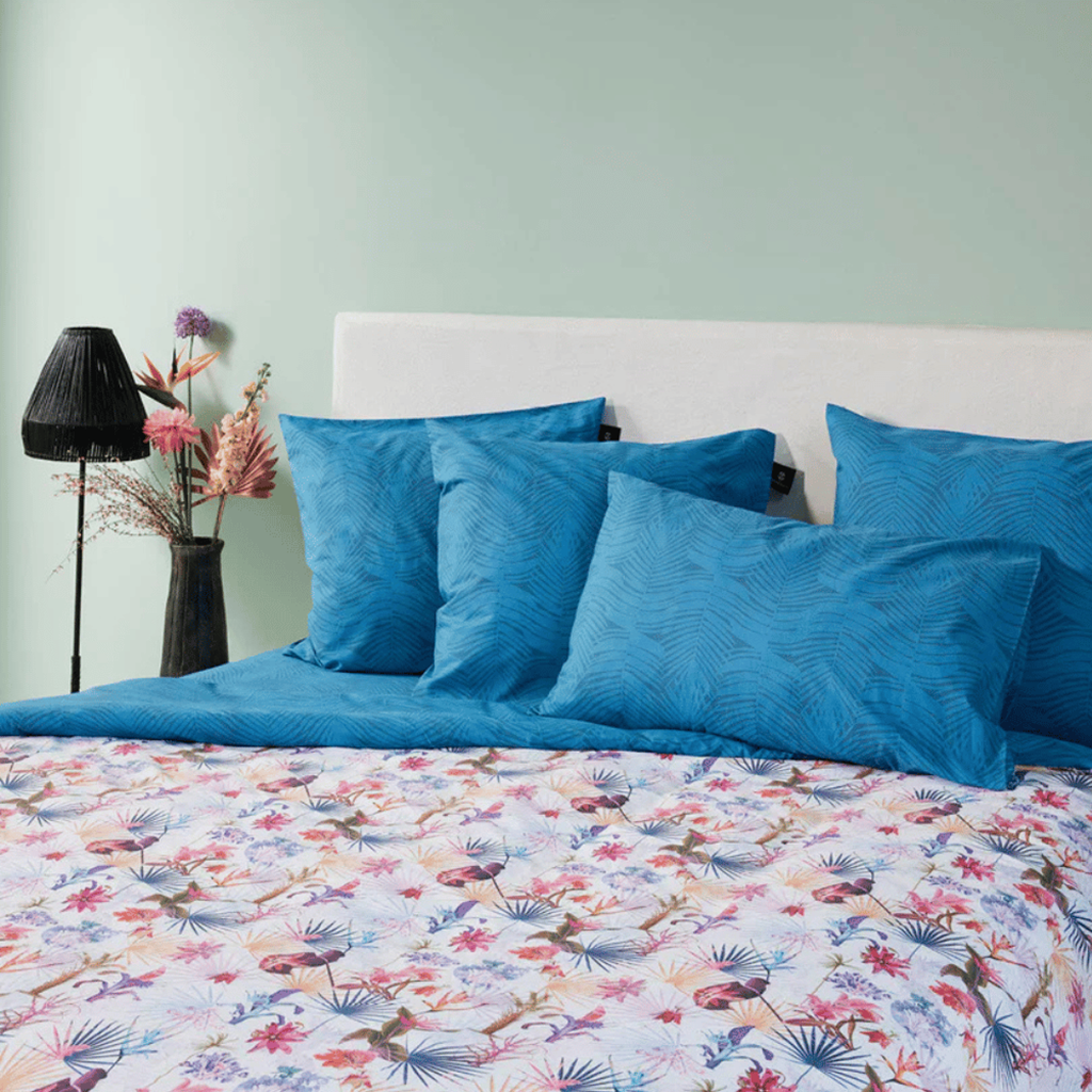 A capa de edredão Christian Lacroix Multi Paradisio Bleu transforma seu quarto em um verdadeiro refúgio de requinte.