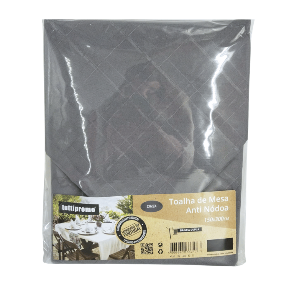 Toalha de mesa anti-nódoa, com dupla bainha.