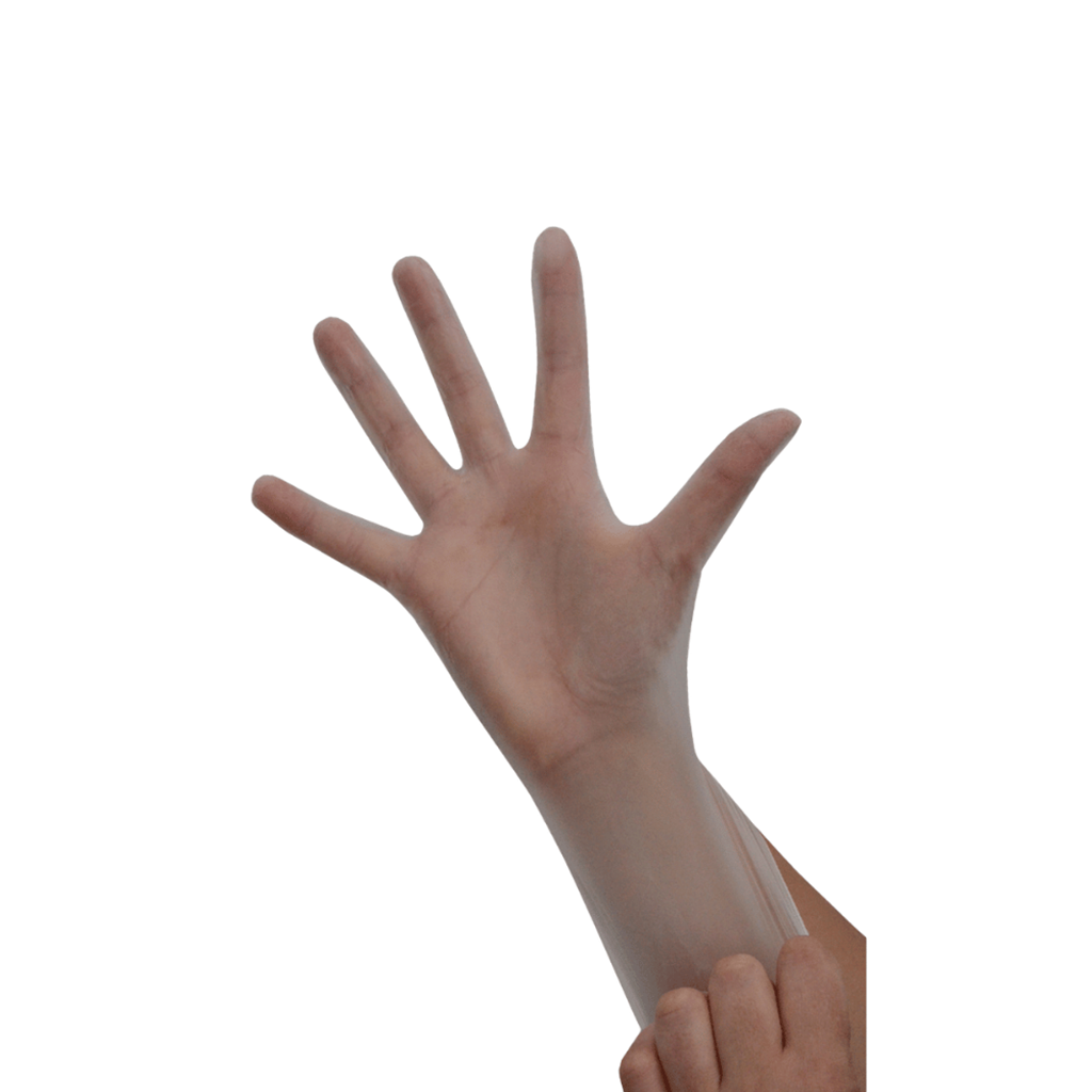 Luvas de vinil descartáveis com pó para facilitar o calçar, não estéreis e ambidestras.