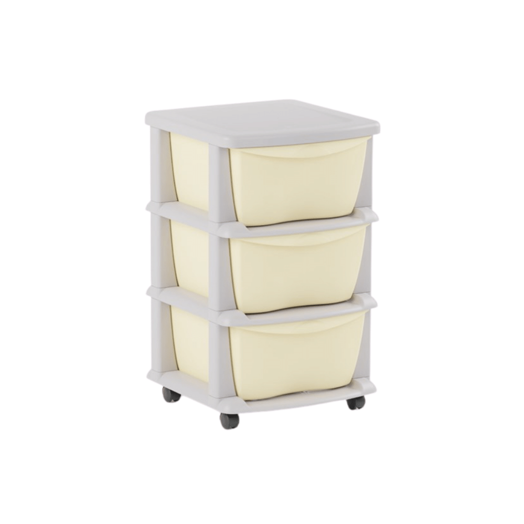 Módulo de arrumação de plástico com 3 gavetas para criança na cor amarelo bebé.