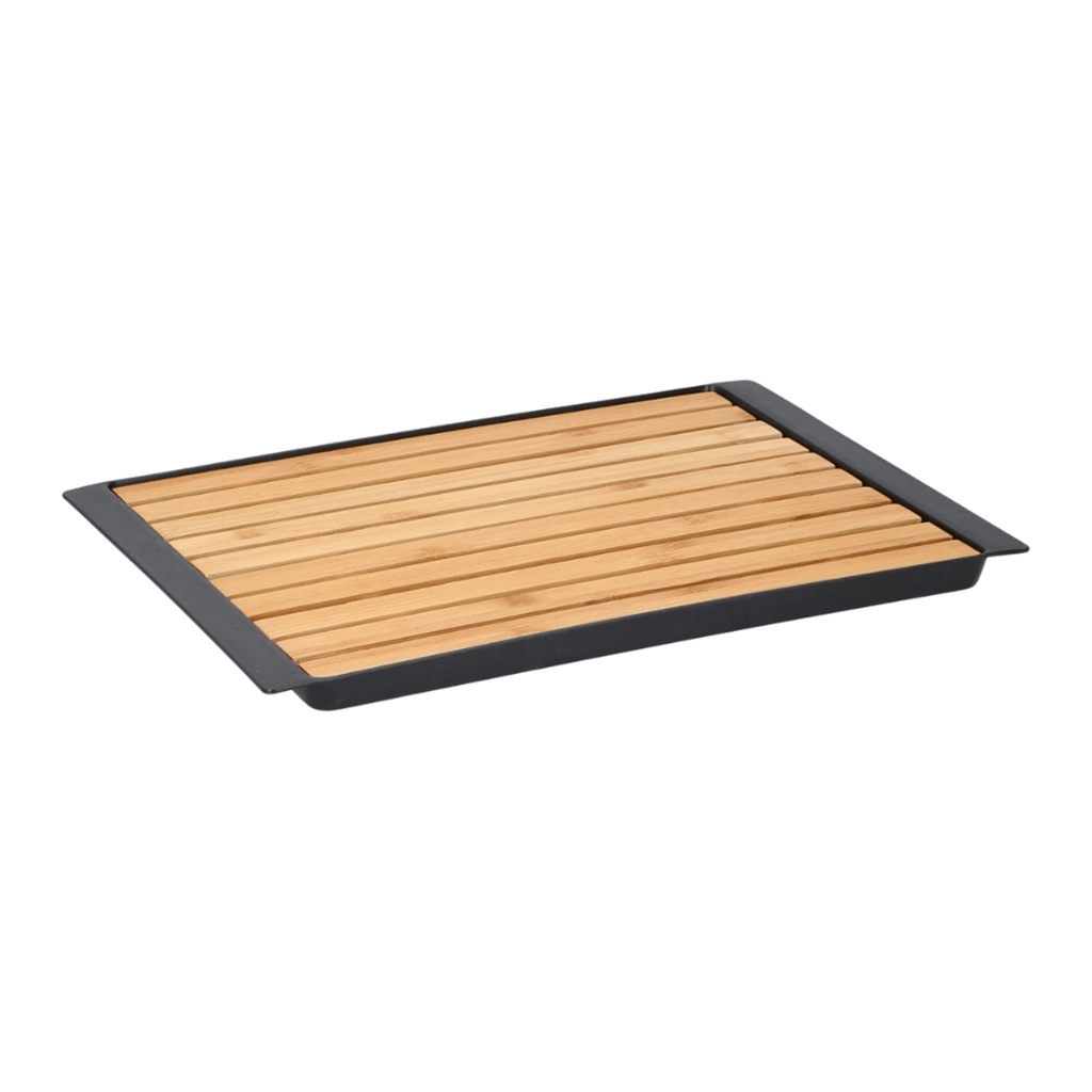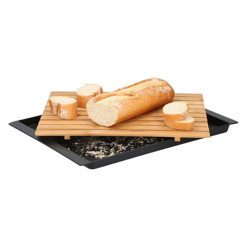 DescriçãoTábua de corte, com tabuleiro coletor de migalhas.