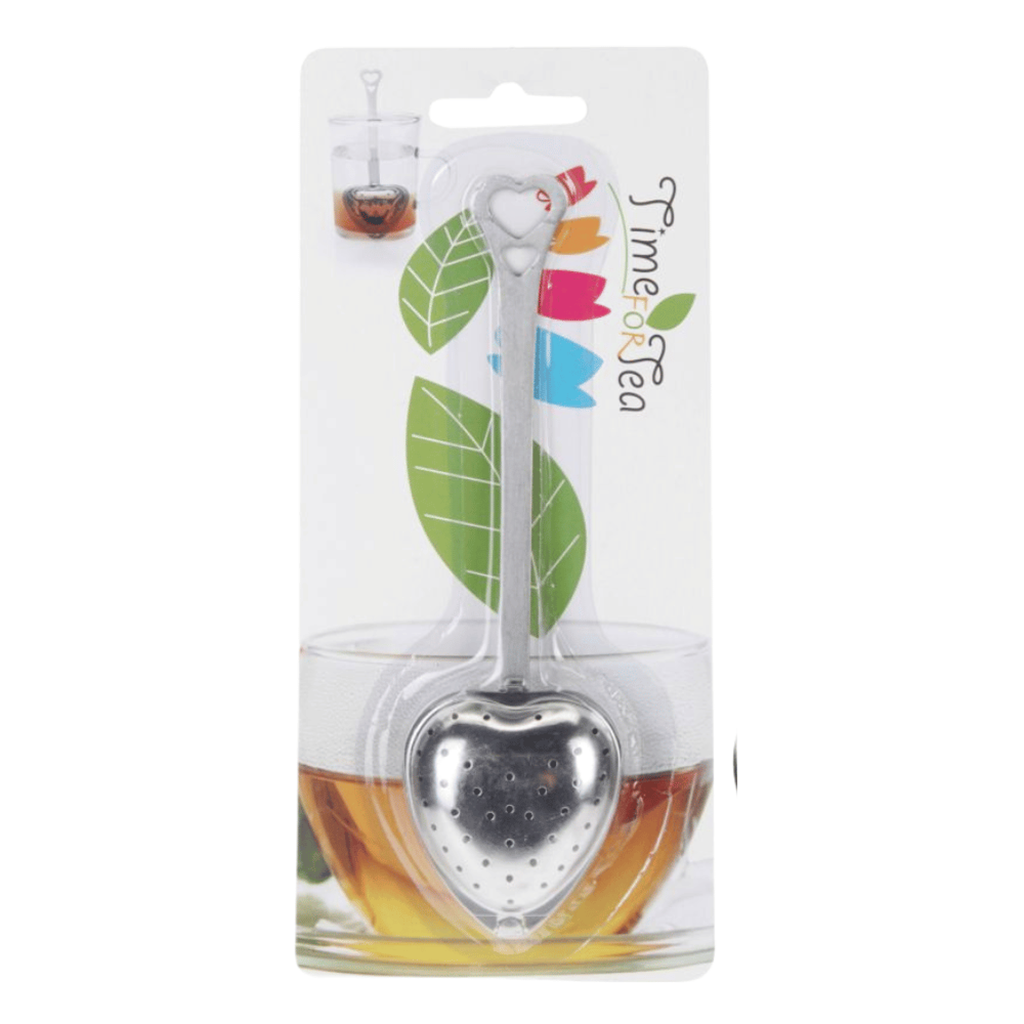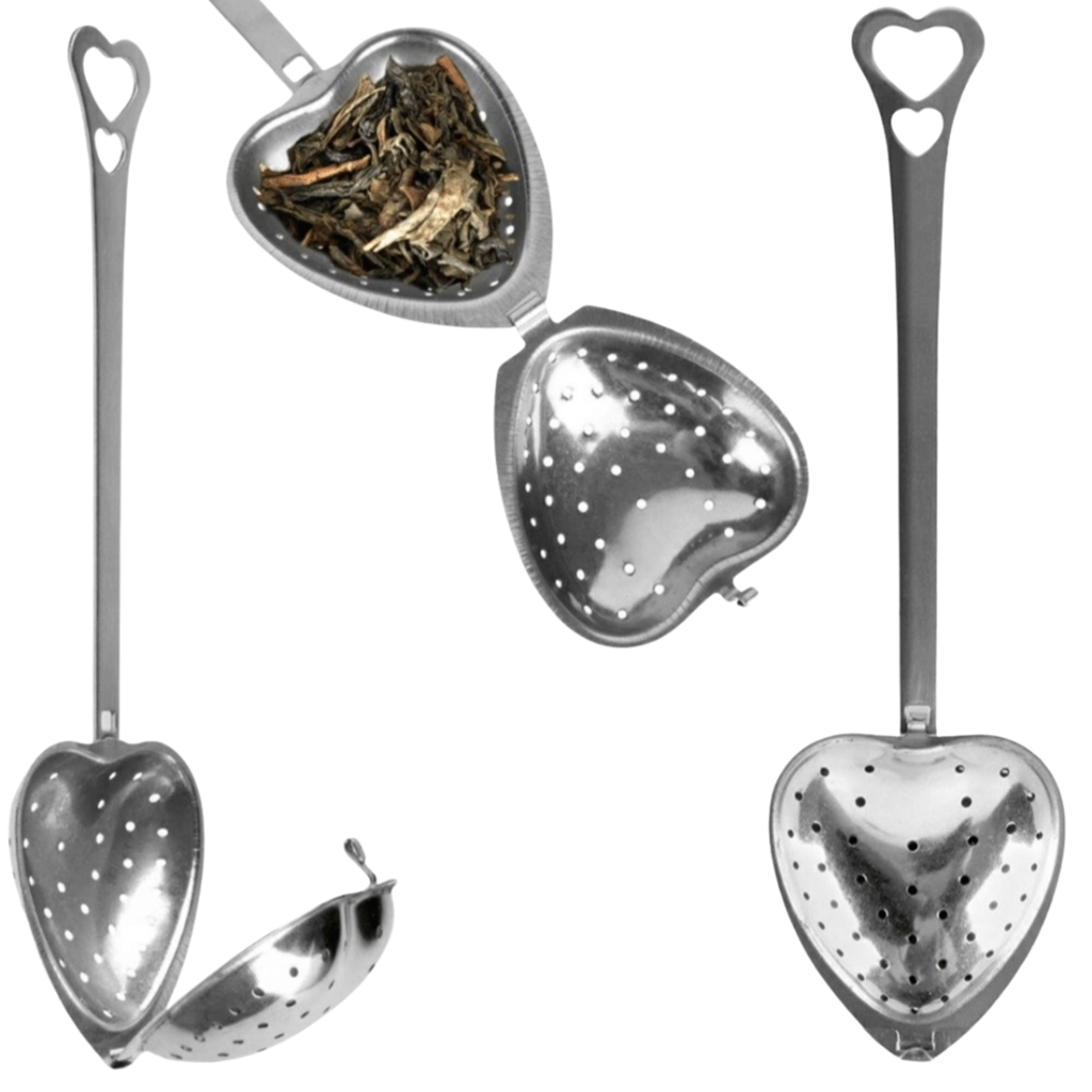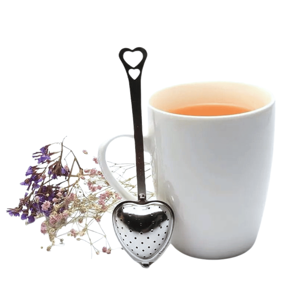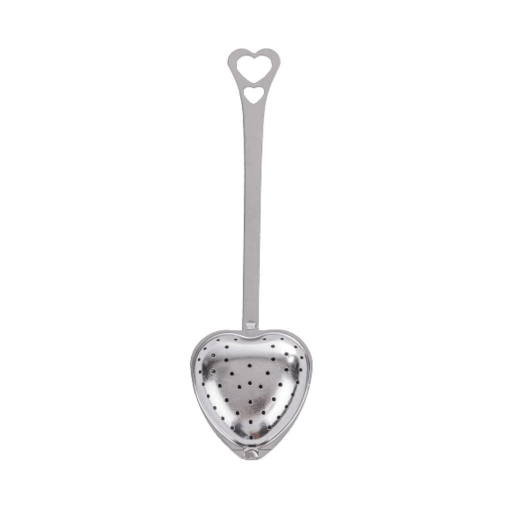 Coador de chá de aço inoxidável em formato de coração.