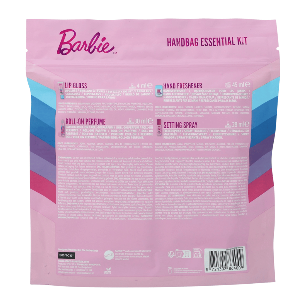 O kit Essencial Barbie Pink Dreams, é prático e moderno, este conjunto de 4 peças, oficialmente licenciado pela Mattel Barbie, inclui produtos de beleza essenciais para o rosto e o corpo, perfeitos para levar para qualquer lugar.