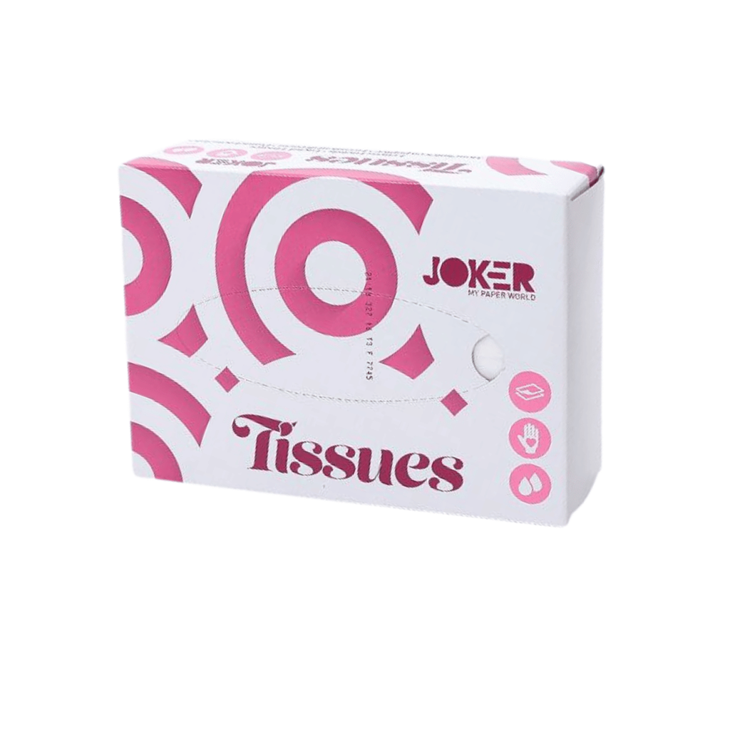 DescriçãoLenços faciais de papel suave e absorvente.