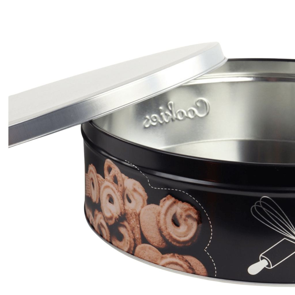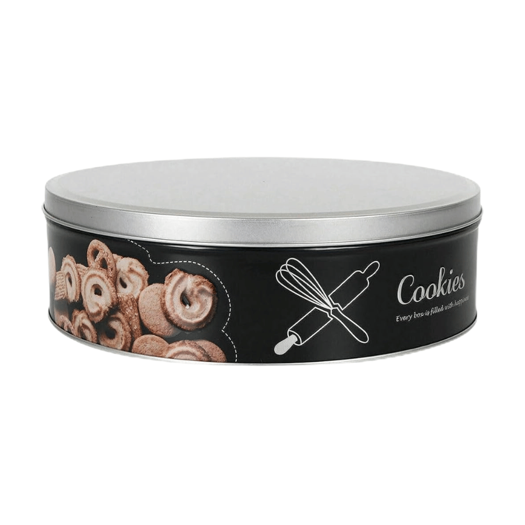 DescriçãoCaixa em metal para guardar bolos e bolachas.