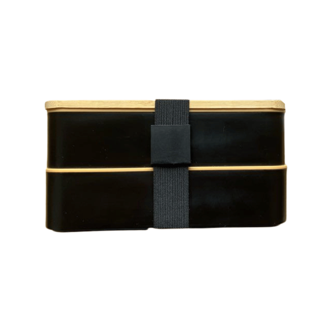 LunchBox 100% hermética com dois recipientes, ambos encaixados e unidos por uma banda de silicone para facilitar o transporte.