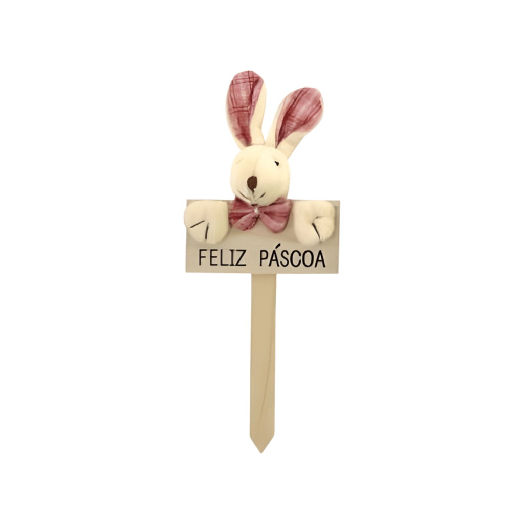 PLACA FELIZ PÁSCOA C/COELHO ROSA 10X24CM