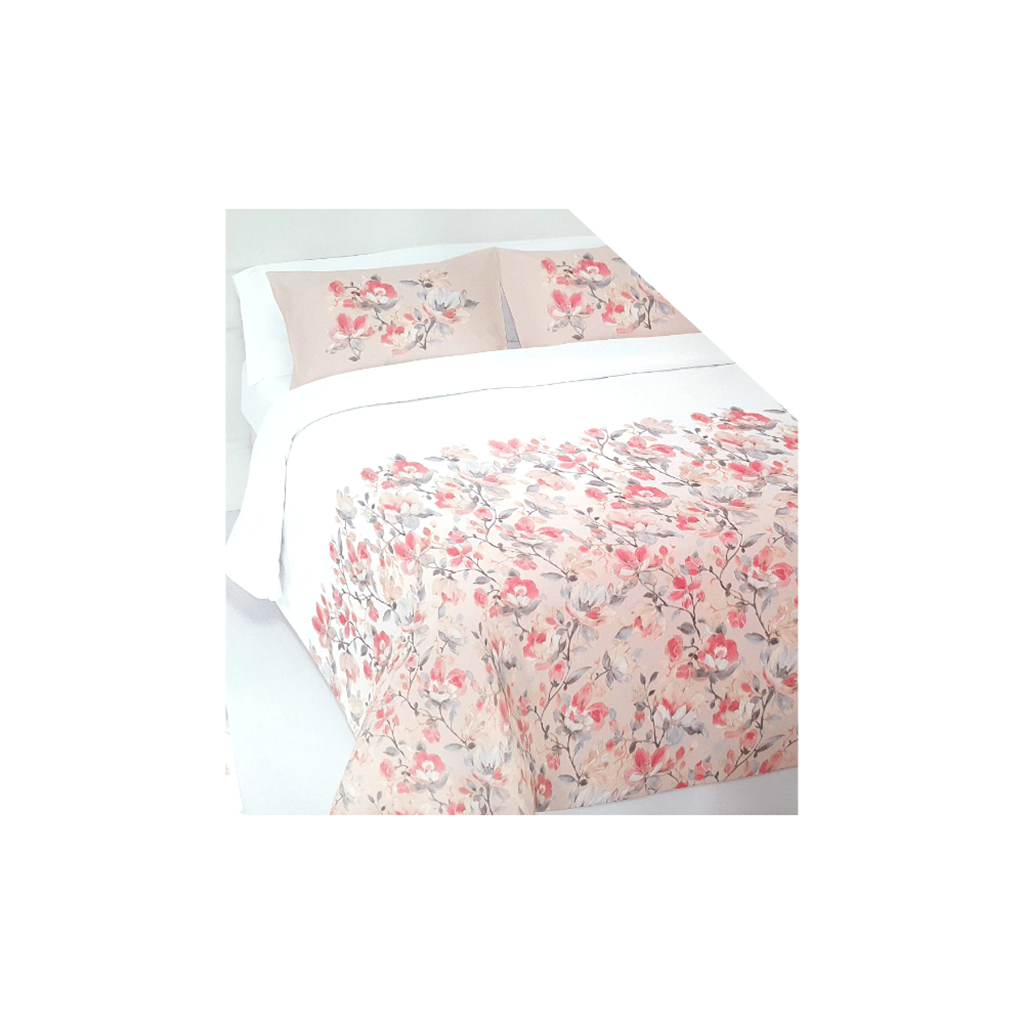 EDREDÃO MINHO CASAL FLORES ROSA E BEGE