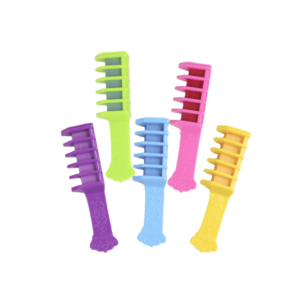 Conjunto de 5 pentes para coloração temporária do cabelo, são fáceis de usar e para remover a cor, basta lavar o cabelo com água e champô.